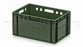 Ящик для мяса Е3 это третий по размеру в линейке мясных ящиков. Разработан специально для использования в мясной промышленности. Отлично штабелируется и собирается в единый сет со всеми ящиками серии. Изготовлен из первичного полиэтилена, и адаптирован для хранения в холодильных и морозильных камерах.